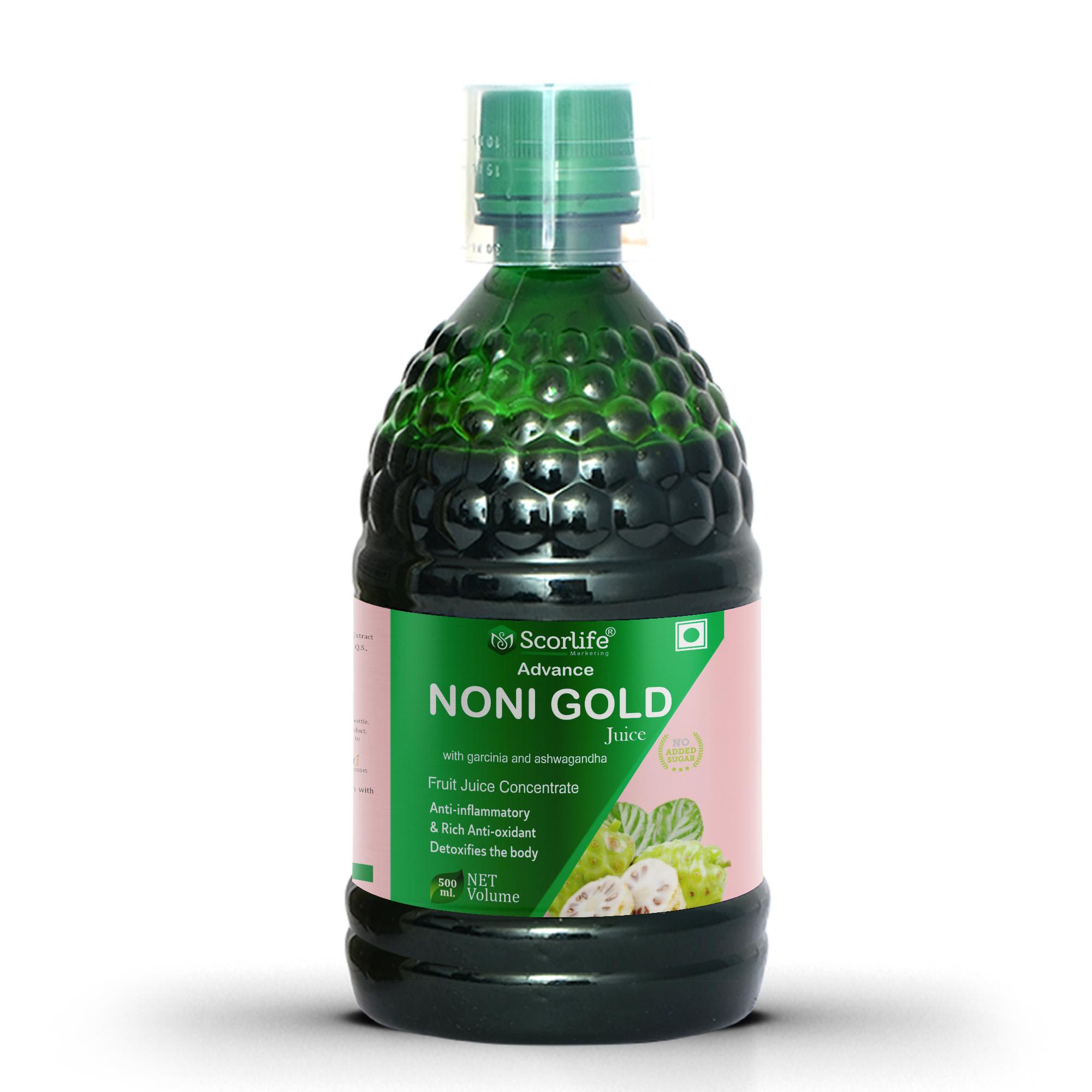 ABOUT SCORLIFE NONI GOLD JUICE - Noni Gold Juice is derived from the fruit of a small evergreen plant known as Morinda Citrofolia or Indian mulberry, this has been used for more than 2000 years to support the entire body function. The juice also helps regulate healthy blood sugar levels and is a natural memory booster.